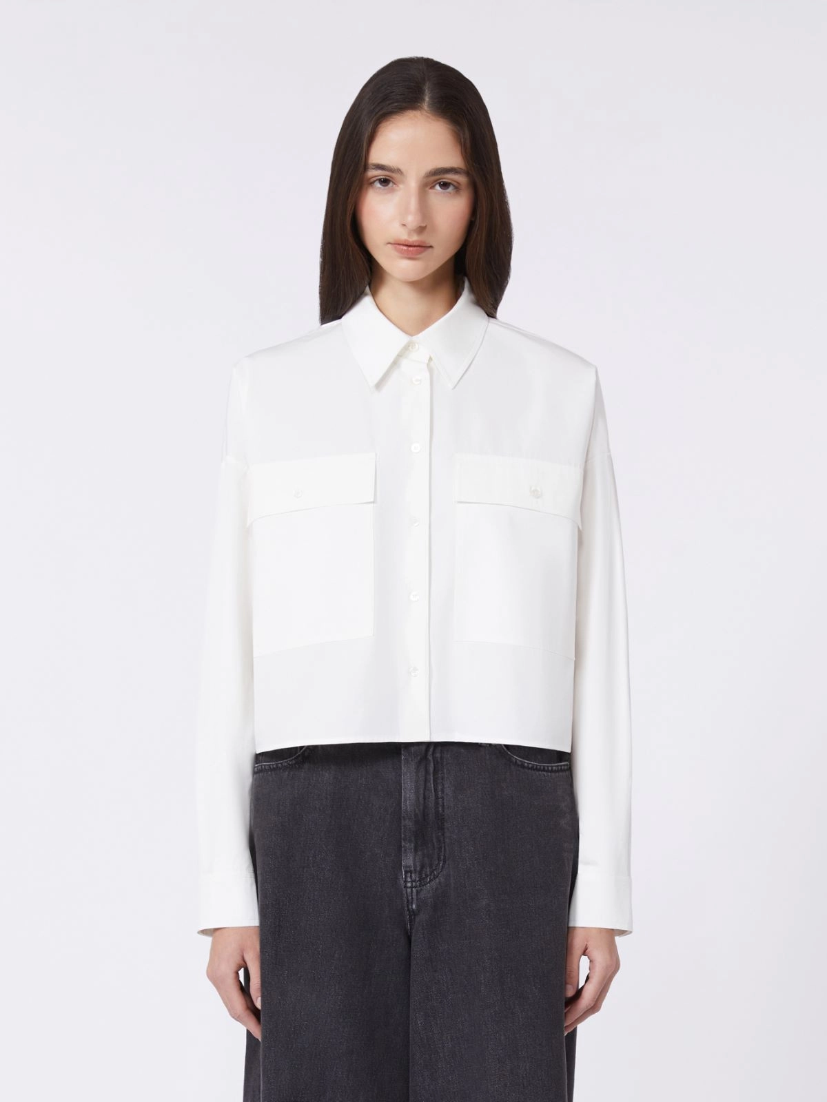 Asymmetrical washed cotton shirt + WHITE - Max Mara
